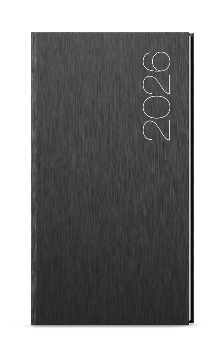 Kapesní týdenní diář v lesklé černé barvě se strukturovaným povrchem. Moderní doplněk do každé kapsy. Diář má velký prostor pro poznámky a plánování.