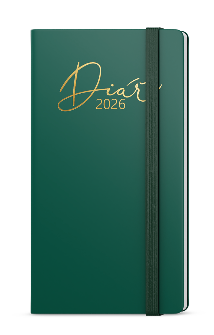 Kapesní týdenní diář v tmavě červené barvě a luxusní zlatou ražbou je malý pomocník pro Vaše plánování.