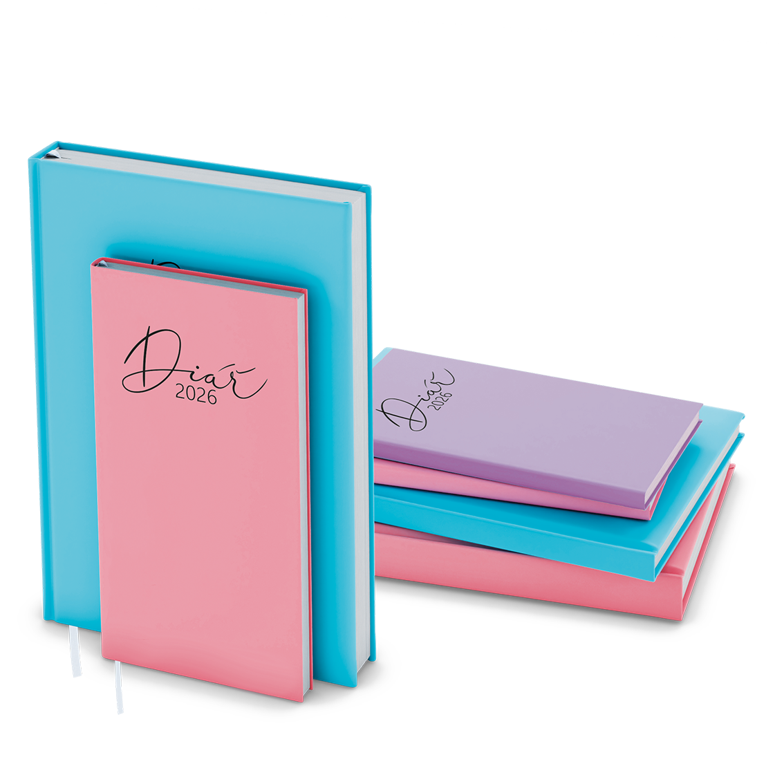 Týdenní diář v nepoškrabatelném laminu s parciálním lakem v pastelově fialové barvě. Je vyráběný ve formátu A5, má velký prostor pro poznámky a plánování.