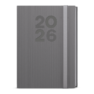 Týdenní diář formátu A5 vyrobený ze strukturovaného materiálu v černé barvě a s gumičkou. Oblíbená grafika vnitřního bloku Vám pomůže účelně plánovat Vaše dny.