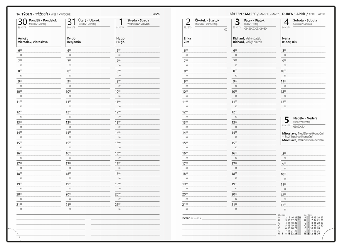 | Barva a materiál: | strukturovaný materiál, ražba roku, jednostranná pěnová výplň desek, šitá vazba V8, kapitálky, stužka, perforované rožky, mapa ČR a SR, vlepená kapsa, gumička, ofset, 70g/m2 | ||||||||||||||
