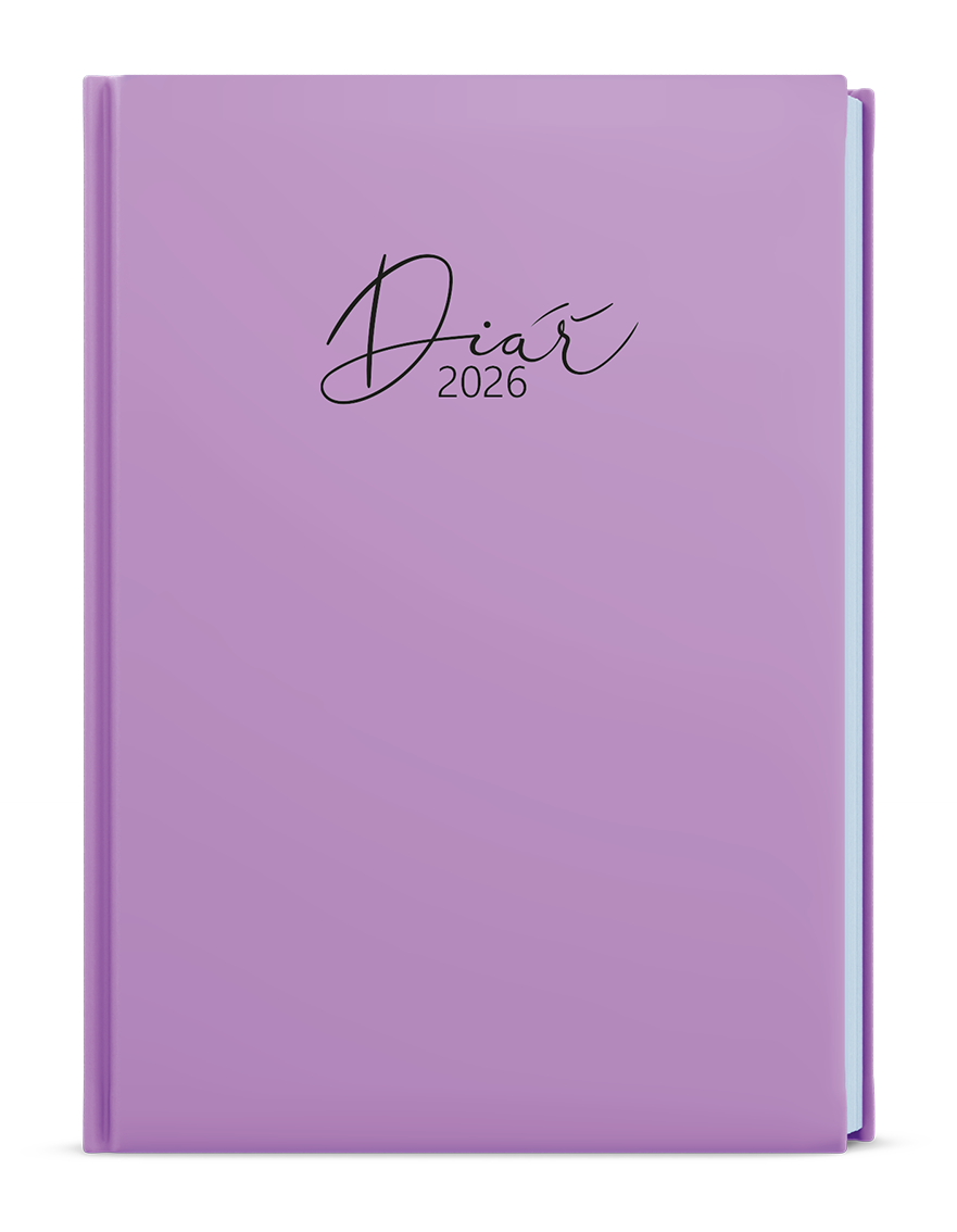 Trendy a praktický týdenní diář v pastelově fialovém odstínu, potažený nepoškrabatelným laminem s parciálním lakem. Diář má velký prostor pro poznámky a plánování.