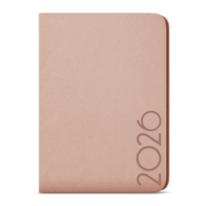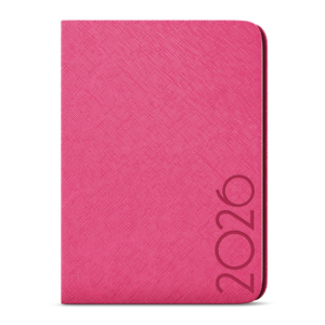 Diář s týdenním kalendáriem na jedné straně a na druhé straně s prostorem na poznámky. Desky jsou vyrobeny ze strukturovaného lesklého materiálu s jednostrannou pěnovou výplní a s kulatými rohy.