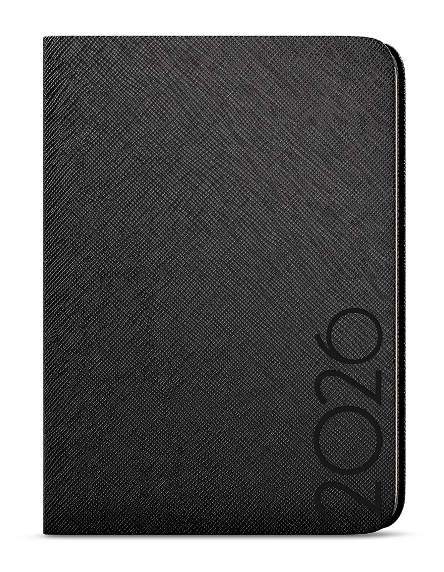 Diář s týdenním kalendáriem na jedné straně a na druhé straně s prostorem na poznámky. Desky jsou vyrobeny ze strukturovaného lesklého materiálu s jednostrannou pěnovou výplní a s kulatými rohy.