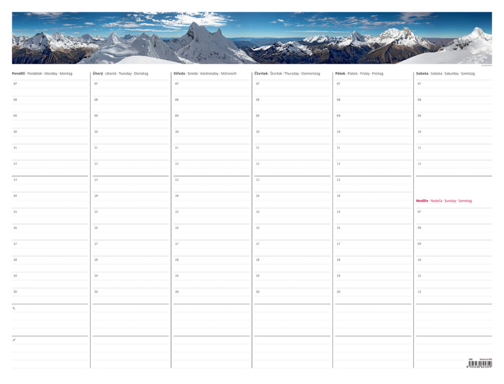 Formát kalendáře: 63 x 48 cm Rozsah kalendáře: 30 listů Možnost dokoupení lišty - lišta není součástí výrobku Mapa je s lepenou vazbou nahoře Umístění na stůl i na zeď