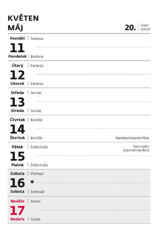 Formát kalendáře: 14,6 x 21,3 cm Kalendárium: české/slovenské týdenní jmenné Rozsah kalendáře: 56 + 1 listů