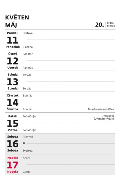 Formát kalendáře: 10 x 15 cm Kalendárium: české/slovenské týdenní jmenné Rozsah kalendáře: 56 + 1 listů