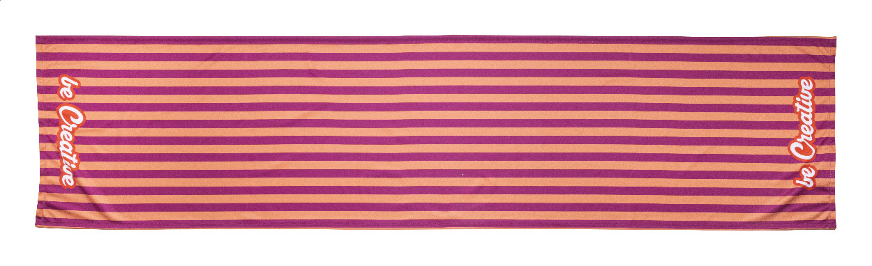 Běhoun na stůl vyrobený na zakázku z mikrovlákna RPET (170 g/m²) s celoplošným sublimačním potiskem, cena nezahrnuje tiskovou přípravu. Min. mn.: 25 ks.