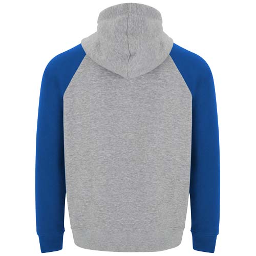 Dvoubarevná unisex mikina s kapucí. Kapuce se zkříženým límcem a kovovými očky. Kontrastní vnitřní kapuce, stahovací šňůrka a raglánové rukávy. Klokaní kapsa. Manžety a lem z elastanového žebrového úpletu 1 × 1. Odnímatelný štítek.