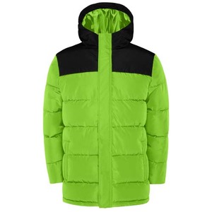 Polstrovaná bunda s kapucí. Přední zip krytý légou. Chránič brady. Dvě boční kapsy na zip. Elastické manžety.