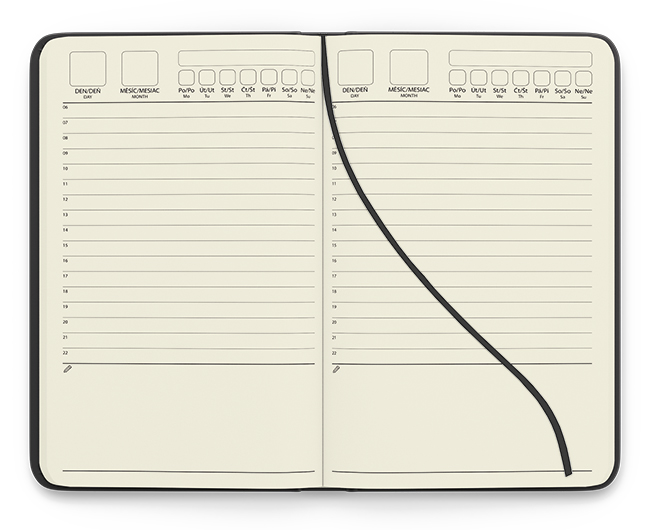 | Barva a materiál: | jemný sametový materiál, šitá vazba V8, černá stužka, kulaté rožky, gumička, vnitřní listy: ofset 70 g | ||||||||||||||