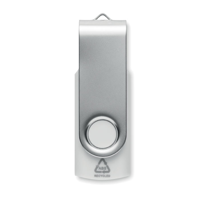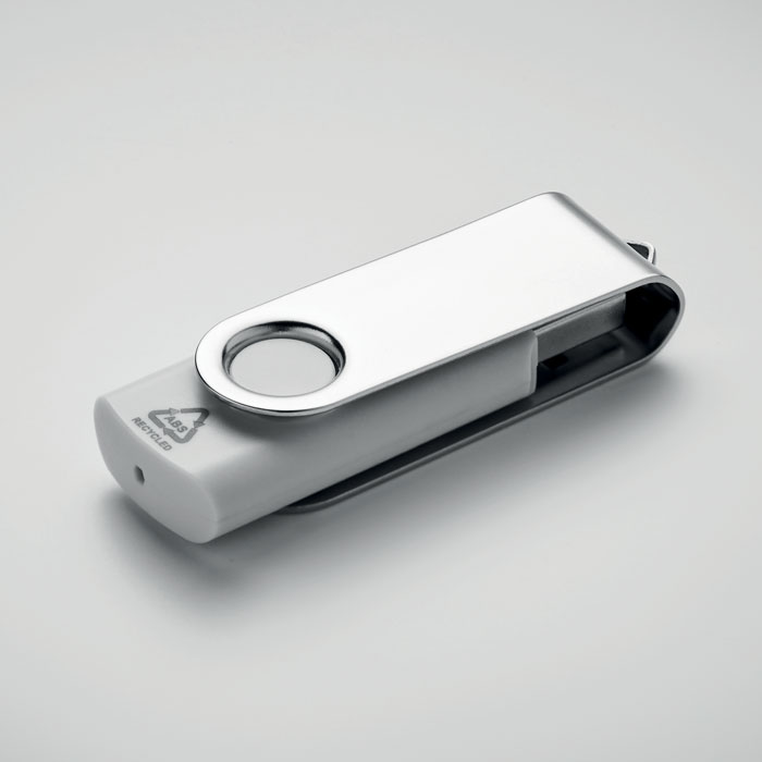 16GB USB 2.0 Flash disk v obale z recyklovaného ABS plastu v bílém provedení. Otočením kovového ochraného krytu jej můžete začít používat.