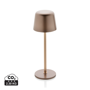 Dobíjecí a přenosná stolní lampa. Vyrobeno z RCS certifikovaného recyklovaného ABS a kovové tyče. RCS certifikace zajišťuje garanci použití recyklovaného materiálu díky transparentnímu přehledu nad dodavatelským řetězcem. Celkový podíl recyklátu dle váhy produktu: 51 %. Stolní lampa funguje na jedno nabití až 8 hodin a lze ji znovu nabít během 3 hodin. Lampa disponuje 3 světelnými režimy (teplé světlo, bílé světlo a neutrální), který lze upravit dotykem na horní část lampy. Dobíjení přes USB-C, součástí je 80 cm nabíjecí kabel z recyklovaného TPE. Baleno v papírovém obalu.