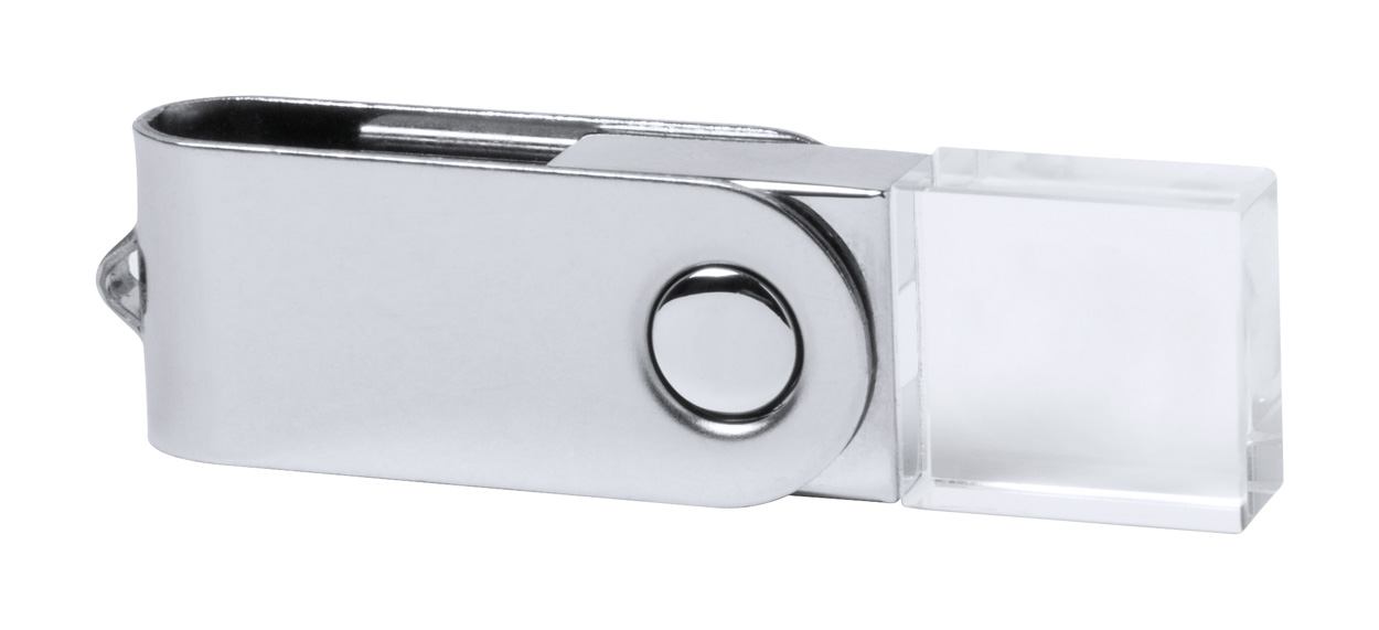 Otočný twist USB flash disk 16GB, transparetní akryl a kovové tělo a klip. S bílým LED světlem. V PVC průhledné krabičce. Cena na dotaz.