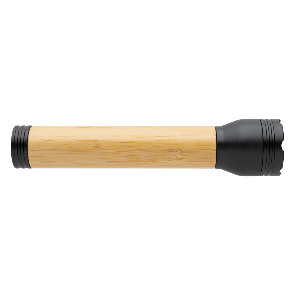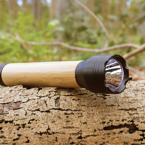 USB dobíjitelná 5 W svítilna vyrobená z RCS recyklovaného ABS a 100 % FSC® bambusu. RCS (Recycled Claim Standard) je globální standard, který umožňuje ověřit použití recyklovaného materiálu v produktu napříč celým dodavatelským řetězcem. Celkový podíl recyklátu dle váhy produktu: 18 %. Výkonná žárovka se svítivostí 300 lumenů a dosvitem až 150 m. 3 módy světla (silné, střední, blikající). Integrovaná baterie s kapacitou 1 800 mAh umožňuje opakované dobíjení jednoduše skrze USB port a pužívání až 6h na jedno nabití. Plné nabití za 5h. Včetně USB C nabíjecího kabelu z RCS recyklovaného TPE. Produkt i balení bez PVC. Baleno v FSC kraftovém dárkovém balení.