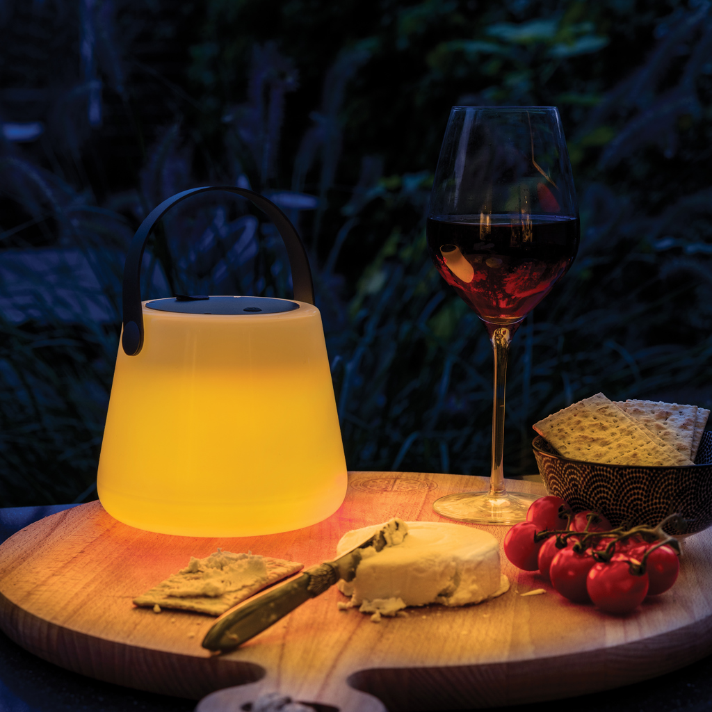 Solární stolní LED světlo se zabudovanou baterií s kapacitou 1 200 mAh. Plné nabití skrze USB C kabel za 3 hodiny. Doba svícení na jedno plné nabití 20 hodin. 10 hodin nabíjení na slunci poskytuje dobu svícení 3-4 hodiny. Voděodolné (IPX 4). Vyrobeno z RCS recyklovaného ABS plastu. RCS (Recycled Claim Standard) je globální standard, který umožňuje ověřit použití recyklovaného materiálu v produktu napříč celým dodavatelským řetězcem. Celkový podíl recyklátu dle váhy produktu: 71 %.