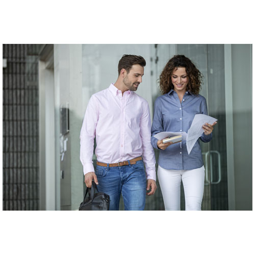 Pánská košile Vaillant oxford s dlouhým rukávem - nadčasový styl s výjimečnou kvalitou. Klasická oxfordská vazba vyrobená z vysoce kvalitní bavlny dodává košili rafinovanou strukturu a celkovému vzhledu dodává hloubku a charakter. Díky límci s knoflíky snadno přechází z formálních na neformální příležitosti. Druhou knoflíkovou dírku od spodního okraje zdobí nápadné oranžové prošití, které dodává košili nádech elegance.