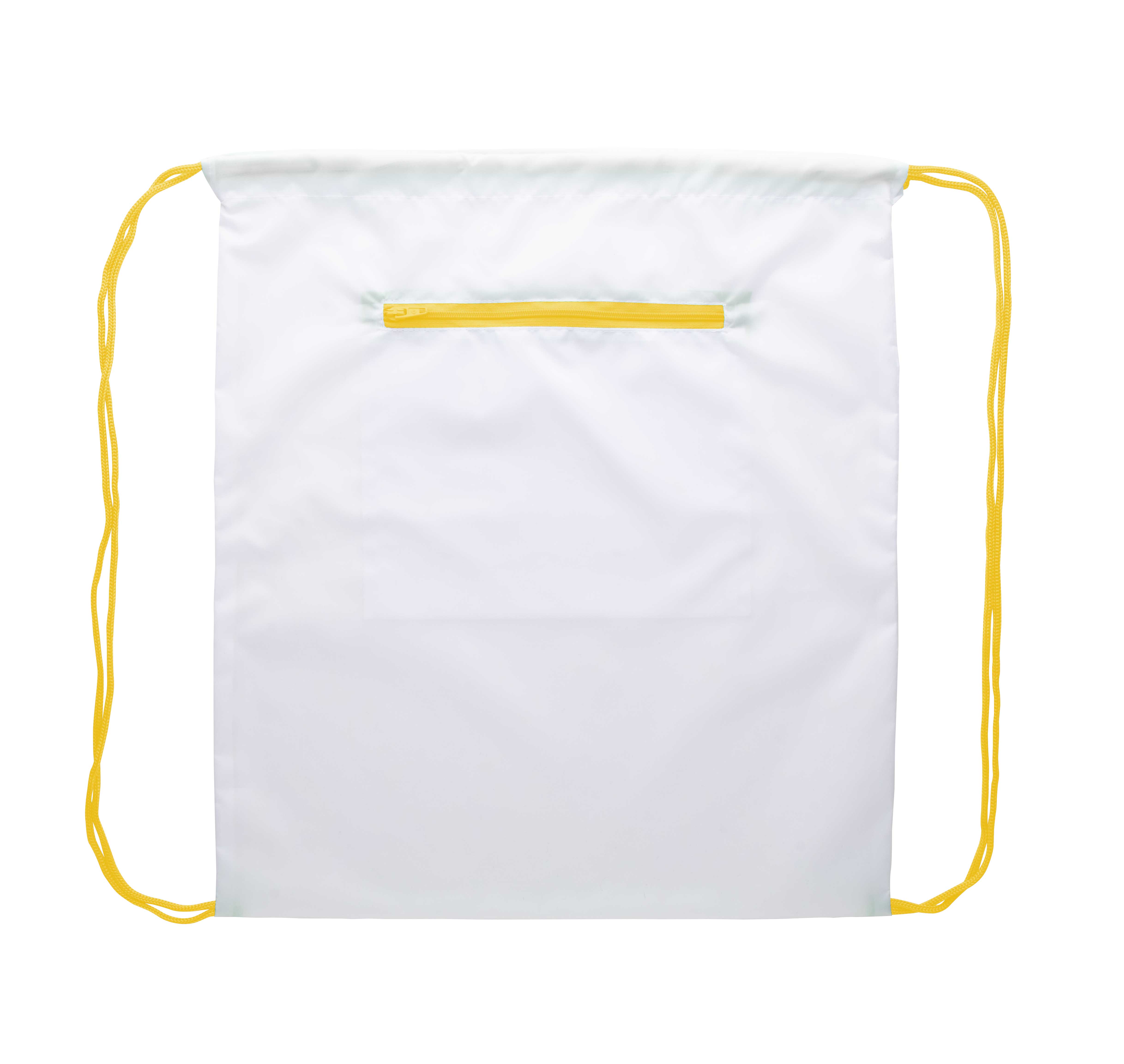 Vak na stahování šňůrkou na zakázku s přední kapsou na zip, polyester 190T. S celoplošně tištěnou grafikou sublimací. Cena zahrnuje sublimační tisk, nezahrnuje tiskovou přípravu. Min. mn.: 50 ks.
