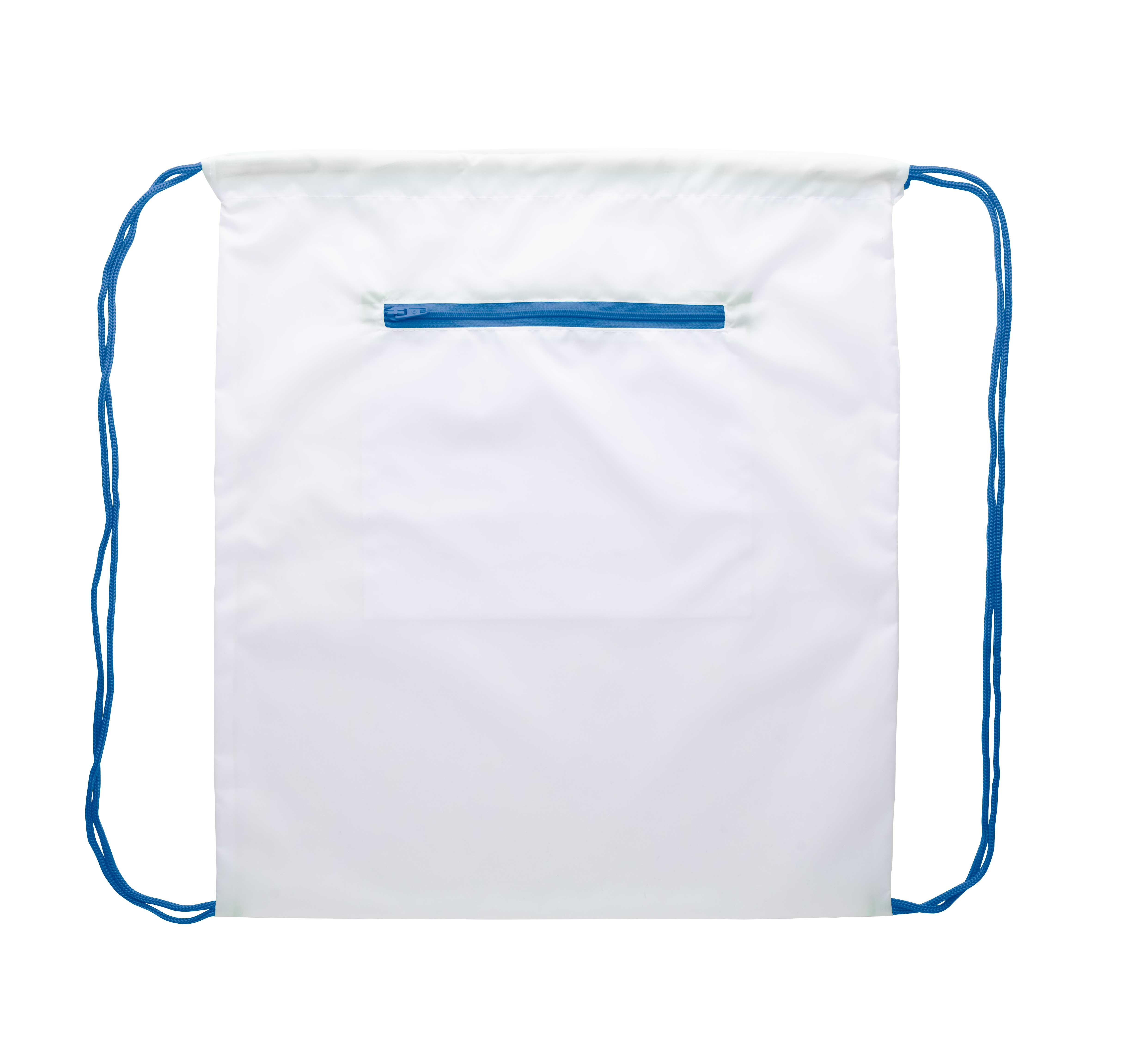 Vak na stahování šňůrkou na zakázku s přední kapsou na zip, polyester 190T. S celoplošně tištěnou grafikou sublimací. Cena zahrnuje sublimační tisk, nezahrnuje tiskovou přípravu. Min. mn.: 50 ks.