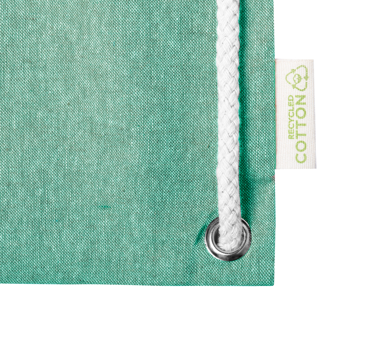 Vak na stahování šňůrkou z recyklované bavlny se silnými pletenými šňůrami a dlouhými uchy. Lze jej také použít jako nákupní tašku. 100% recyklovaná bavlna, 140 g/m².