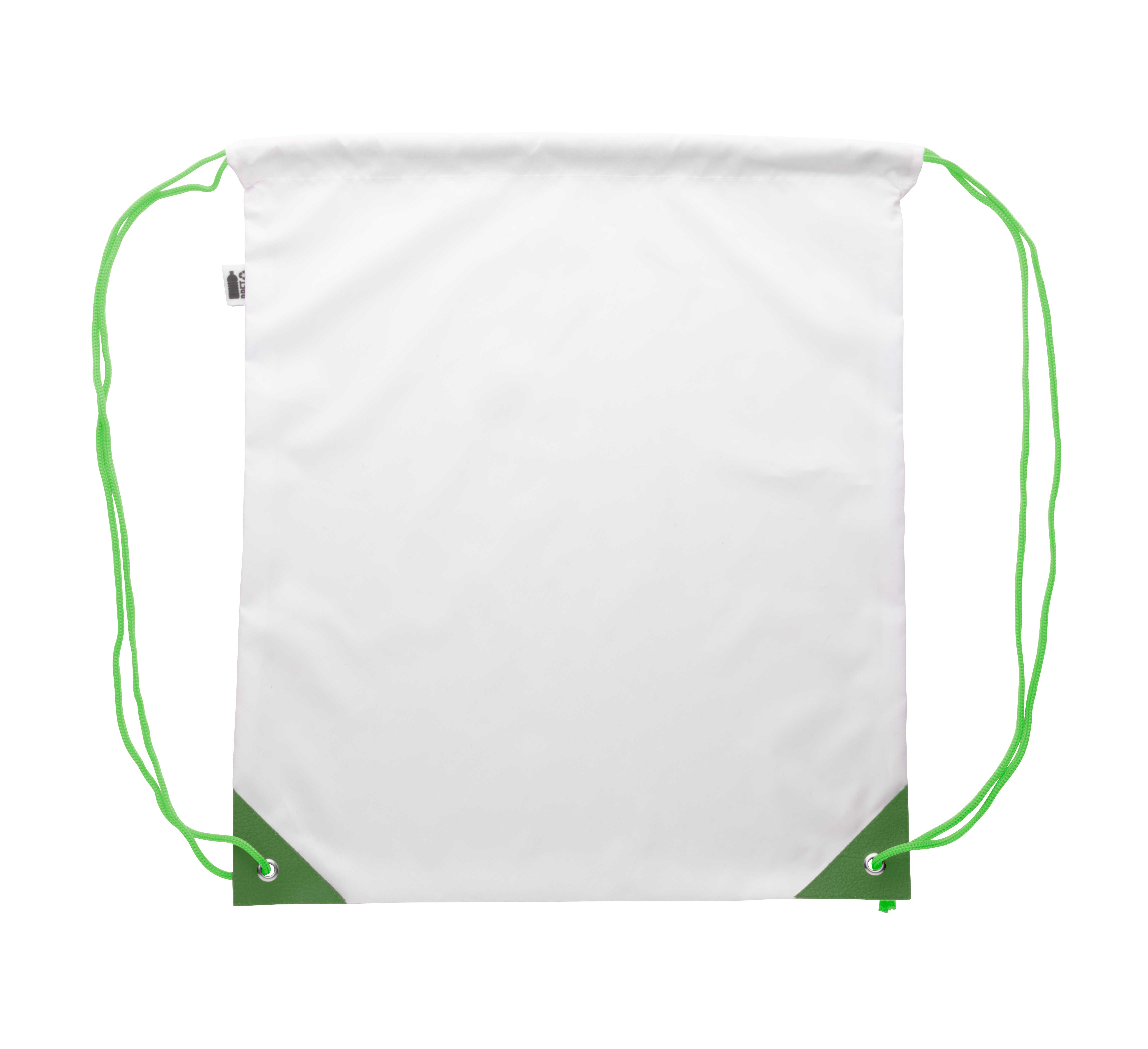 Vak na stažení šňůrkou na zakázku se zesílenými rohy z PU kůže a odpovídajícími barevnými šňůrkami, 190T polyester RPET, s výrazným štítkem RPET. Cena zahrnuje sublimační tisk po celé ploše, nezahrnuje tiskovou přípravu. Min. mn.: 50 ks.