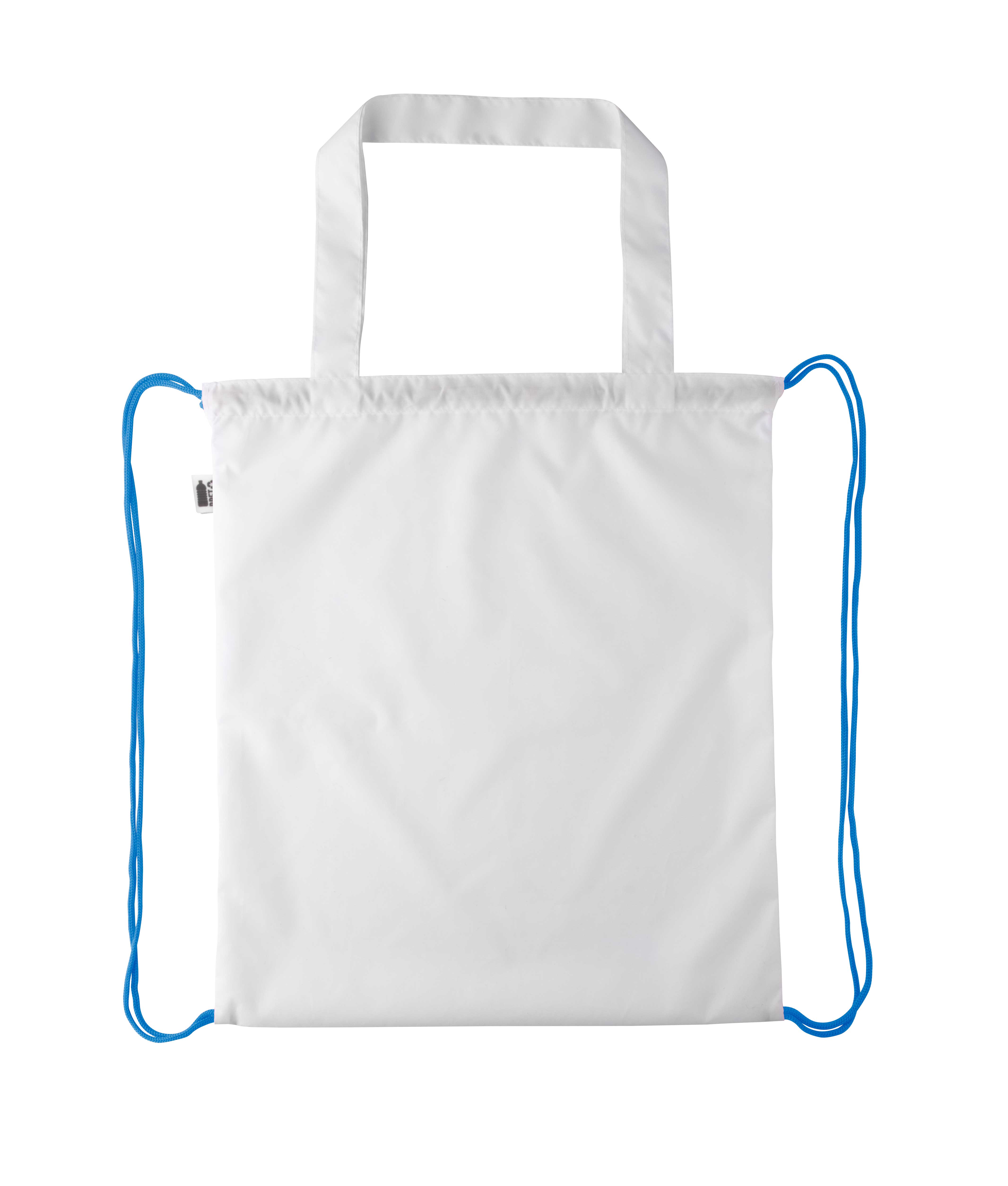 Vak na stažení šňůrkou na zakázku s barevnými šňůrkami a dlouhými uchy, 190T polyester RPET, s výrazným štítkem RPET. Může být použit i jako nákupní taška. Cena zahrnuje sublimační tisk po celé ploše, nezahrnuje tiskovou přípravu. Min. mn.: 50 ks.