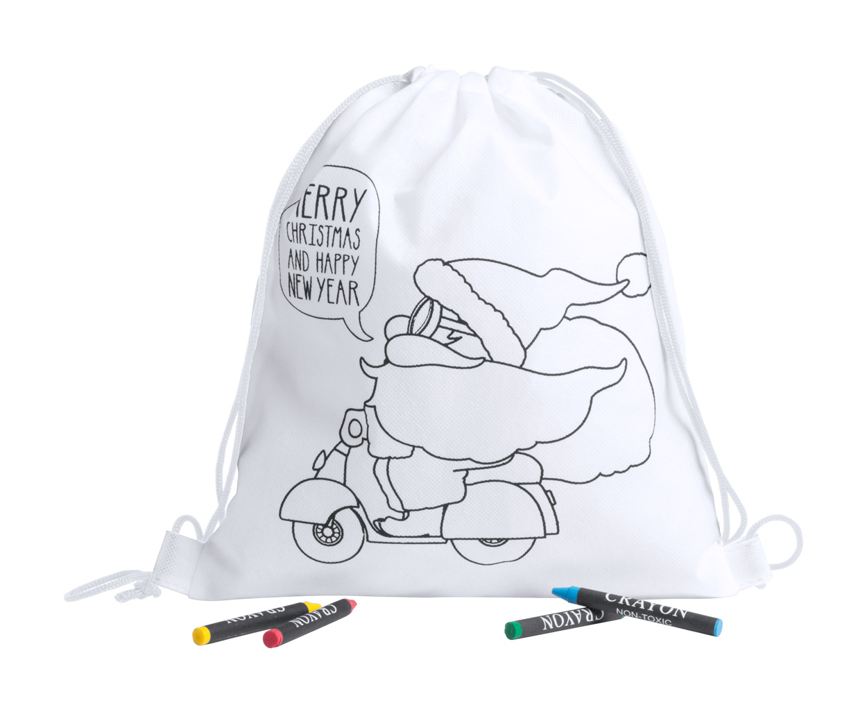 Vak na stažení z netkané textilie na vybarvení s vánočním motivem a 4 voskovkami.
