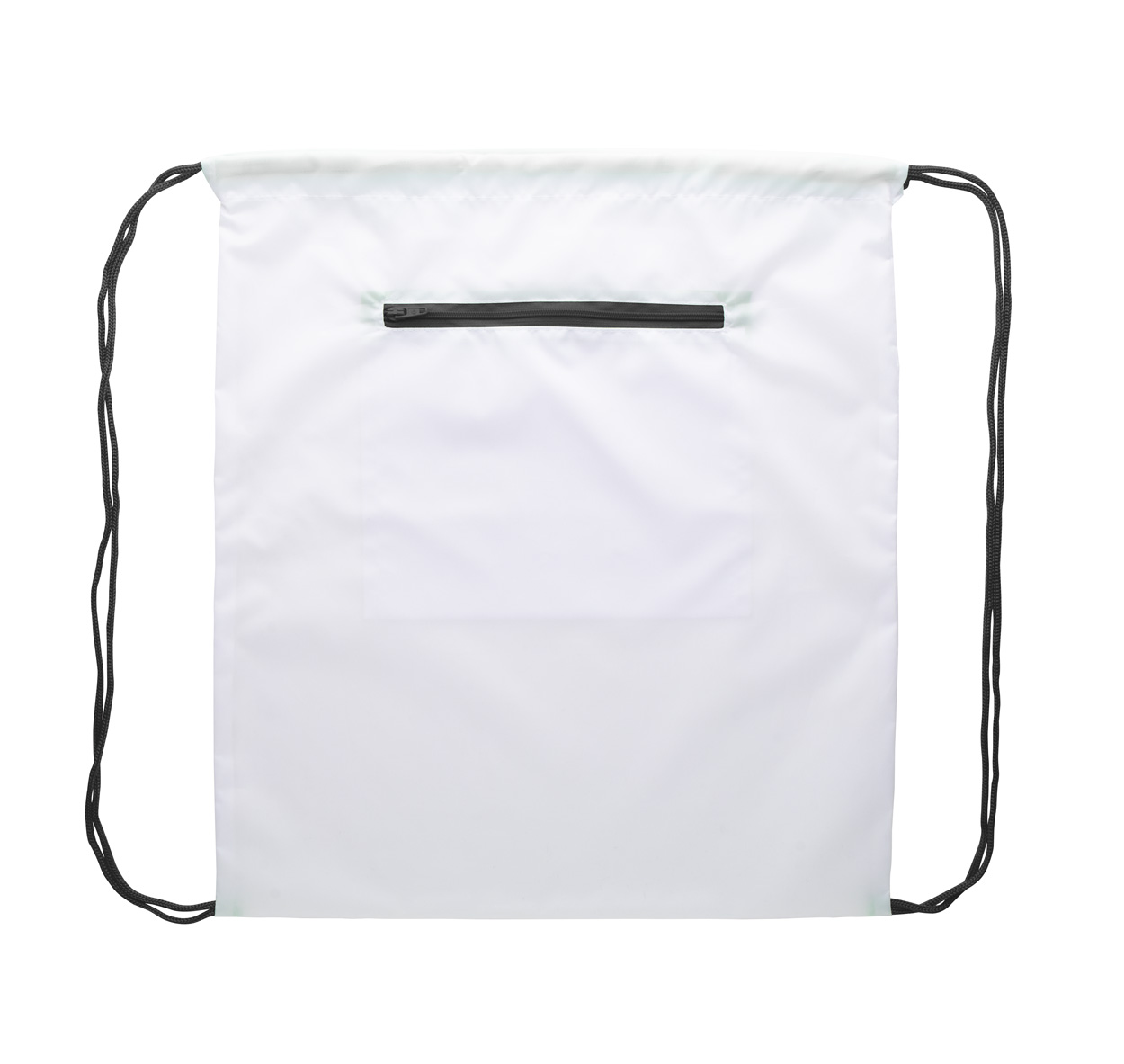 Vak na stažení šňůrkou na zakázku se zipem, přední kapsa chráněná RFID, polyester 190T. Cena zahrnuje celoplošně tištěnou sublimační grafiku, nezahrnuje tiskovou přípravu. Min. mn.: 50 ks.
