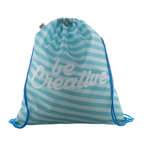 Vak na stažení šňůrkou na zakázku s barevnými šňůrkami, 190T RPET, s etiketou s označením RPET. Cena zahrnuje celoplošný sublimační potisk, nezahrnuje tiskovou přípravu. Min. mn.: 50 ks.