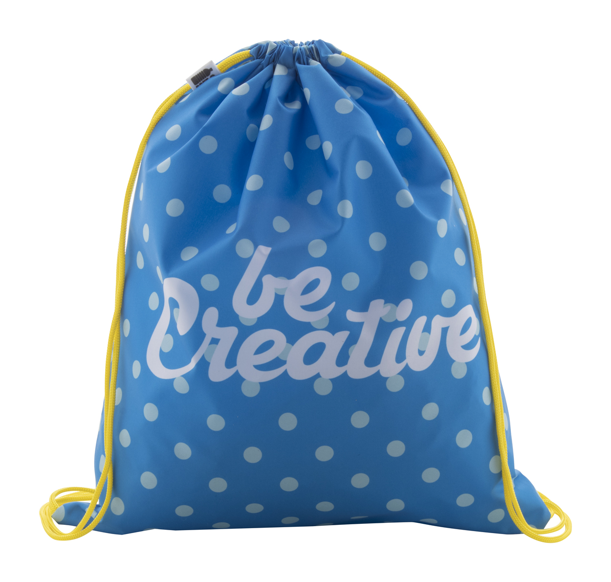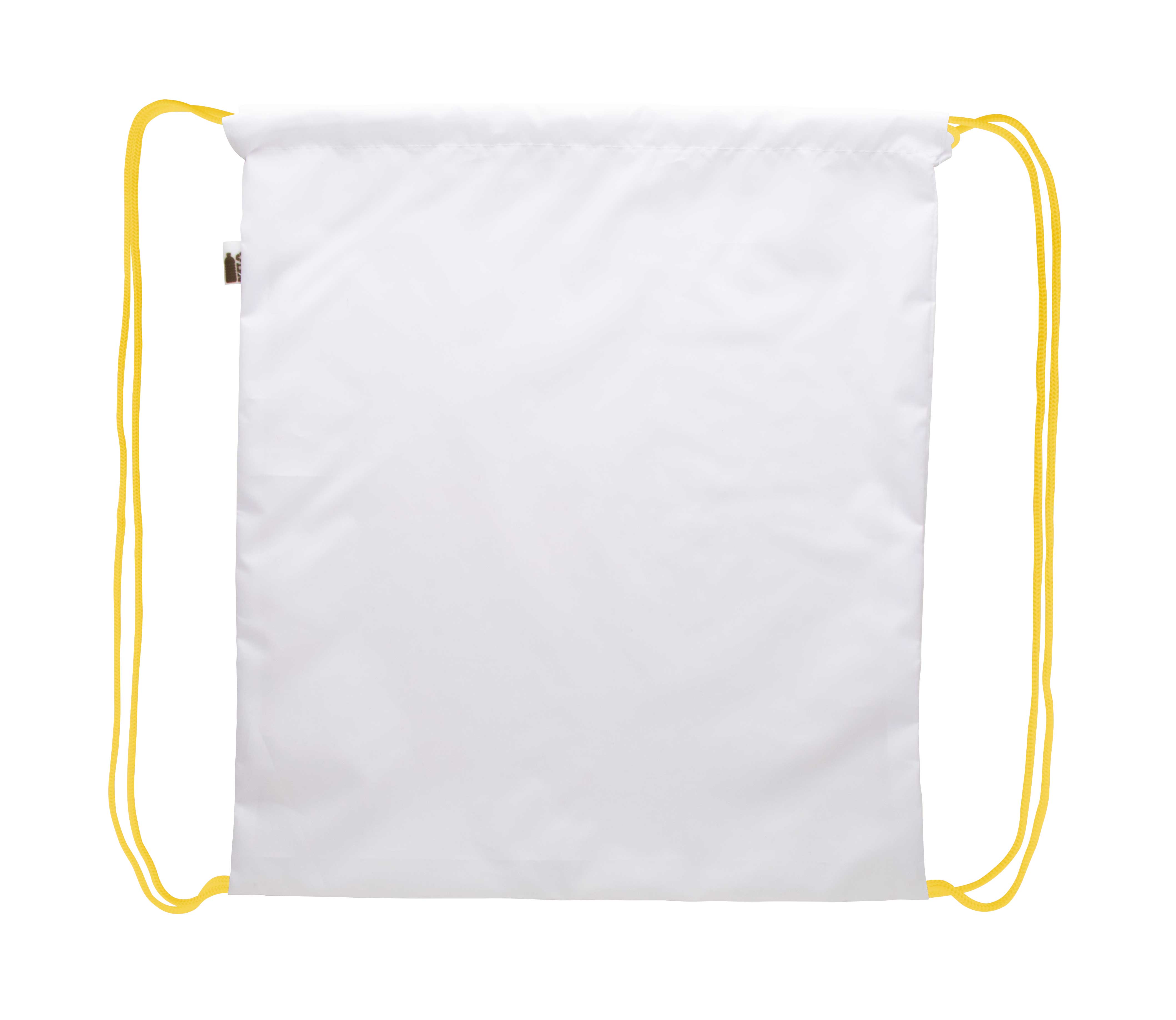 Vak na stažení šňůrkou na zakázku s barevnými šňůrkami, 190T RPET, s etiketou s označením RPET. Cena zahrnuje celoplošný sublimační potisk, nezahrnuje tiskovou přípravu. Min. mn.: 50 ks.