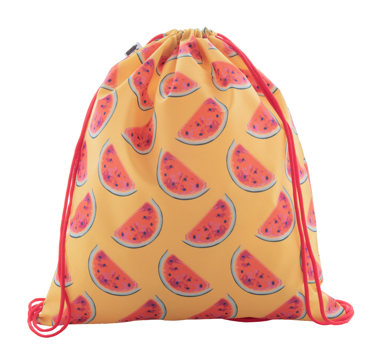 Vak na stažení šňůrkou na zakázku s barevnými šňůrkami, 190T RPET, s etiketou s označením RPET. Cena zahrnuje celoplošný sublimační potisk, nezahrnuje tiskovou přípravu. Min. mn.: 50 ks.