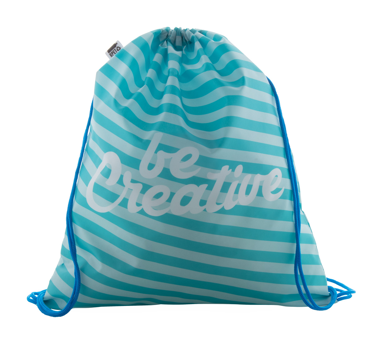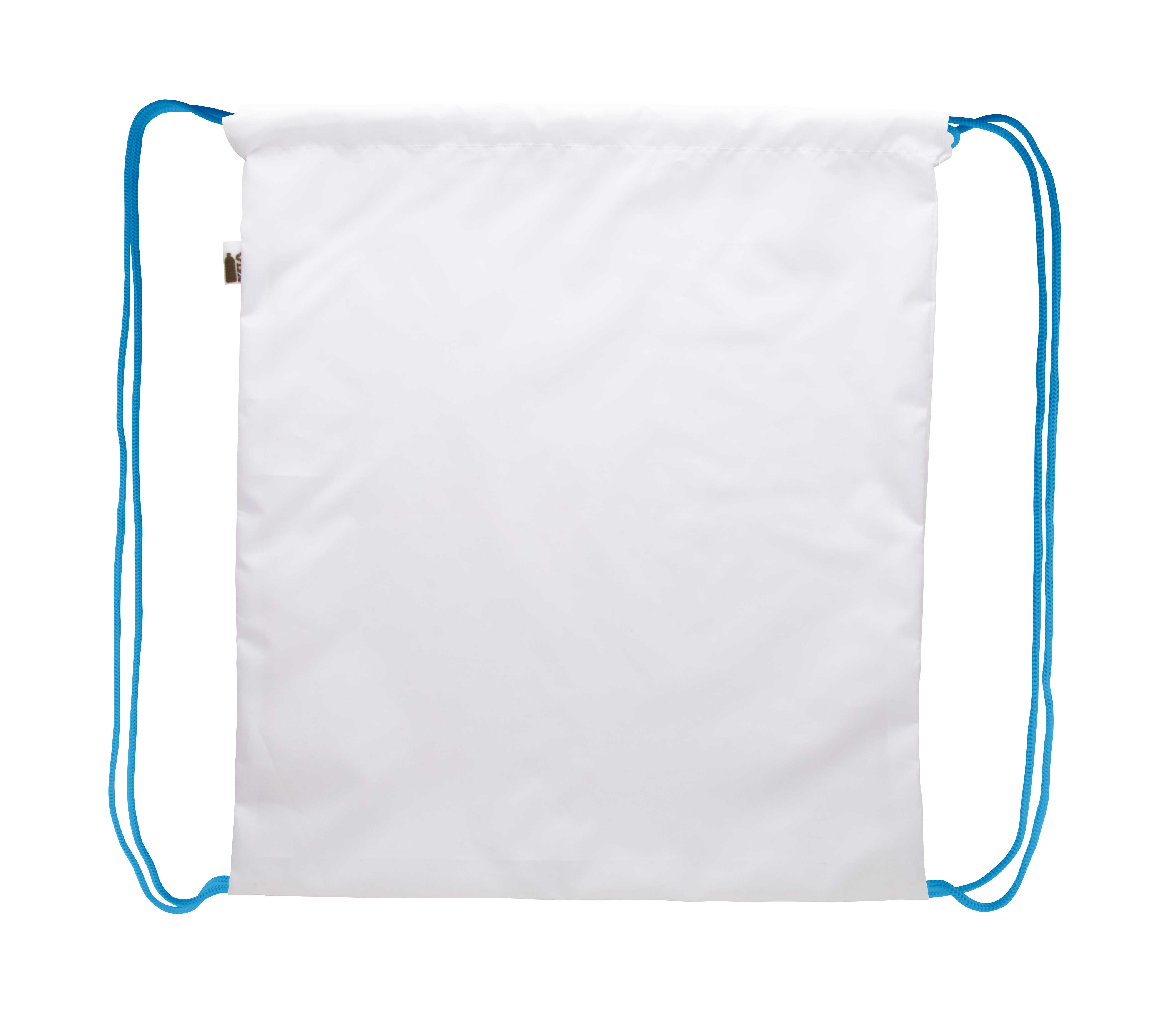 Vak na stažení šňůrkou na zakázku s barevnými šňůrkami, 190T RPET, s etiketou s označením RPET. Cena zahrnuje celoplošný sublimační potisk, nezahrnuje tiskovou přípravu. Min. mn.: 50 ks.