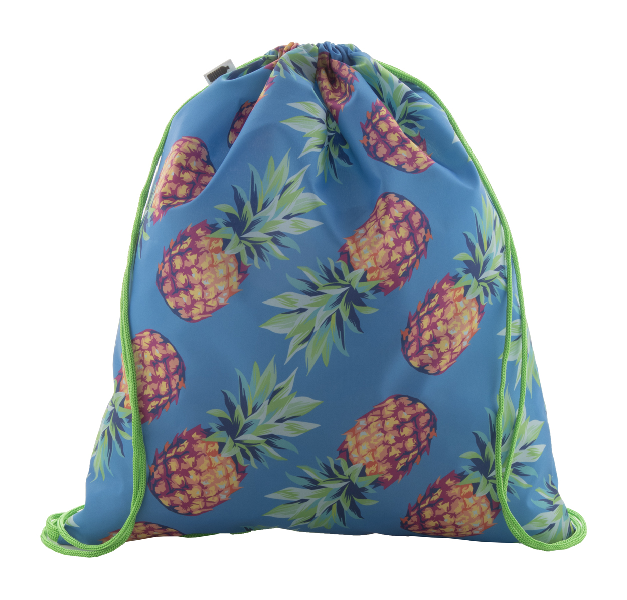 Vak na stažení šňůrkou na zakázku s barevnými šňůrkami, 190T RPET, s etiketou s označením RPET. Cena zahrnuje celoplošný sublimační potisk, nezahrnuje tiskovou přípravu. Min. mn.: 50 ks.