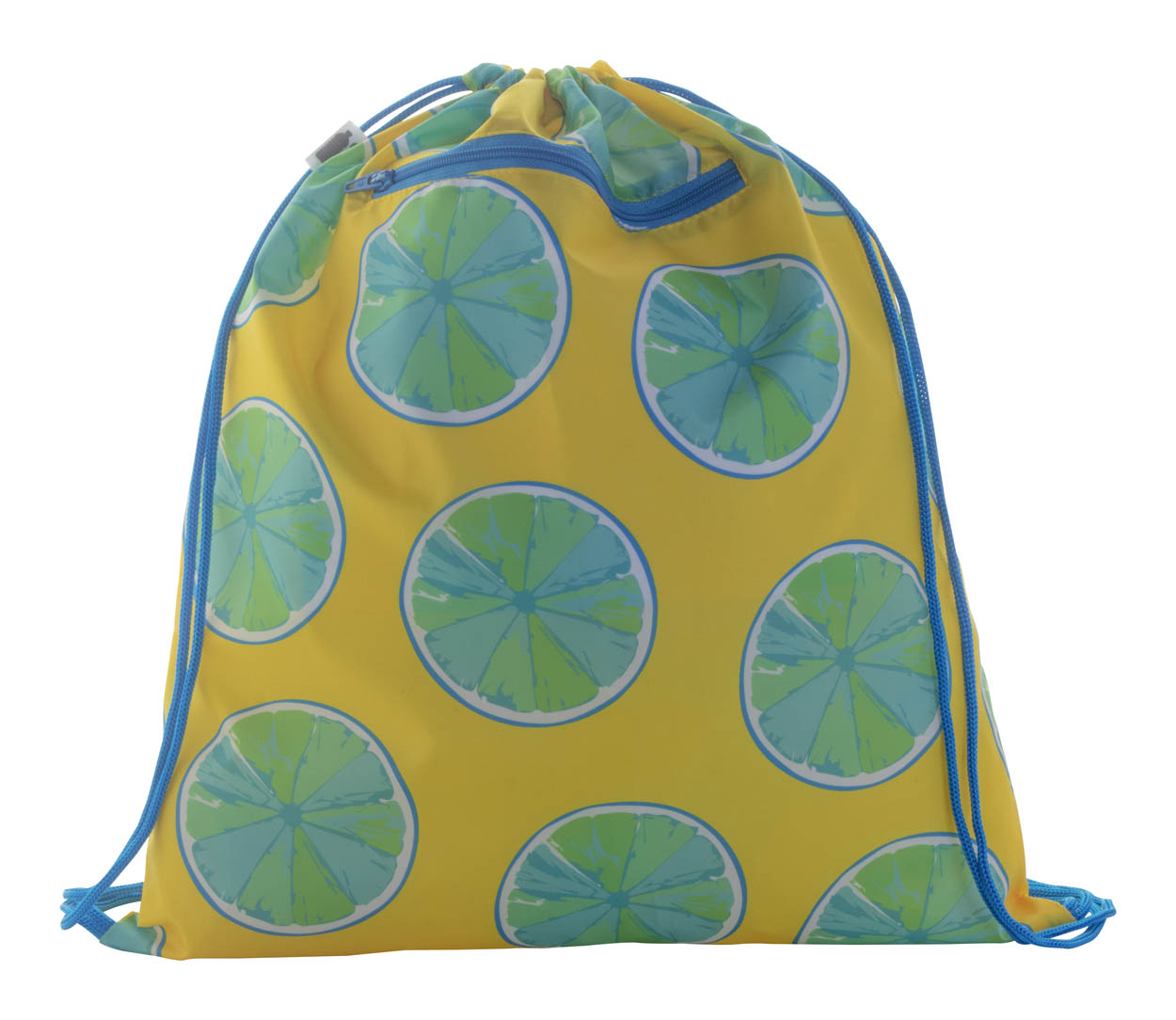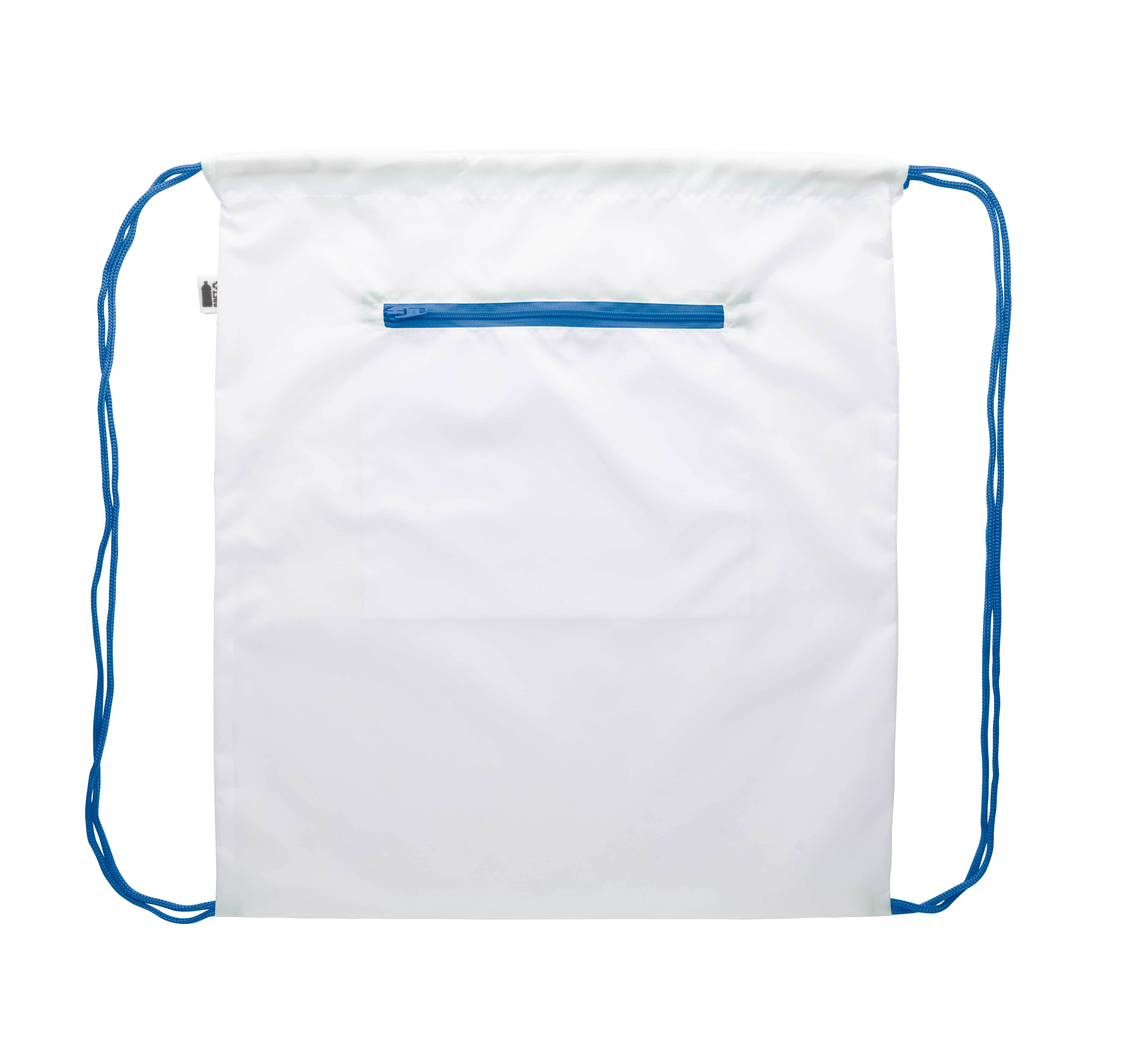 Vak na stahování šňůrkou na zakázku s přední kapsou na zip, 190T RPET polyester, s etiketou s označením RPET. S celoplošně tištěnou grafikou sublimací. Cena zahrnuje sublimační tisk, nezahrnuje tiskovou přípravu. Min. mn.: 50 ks.