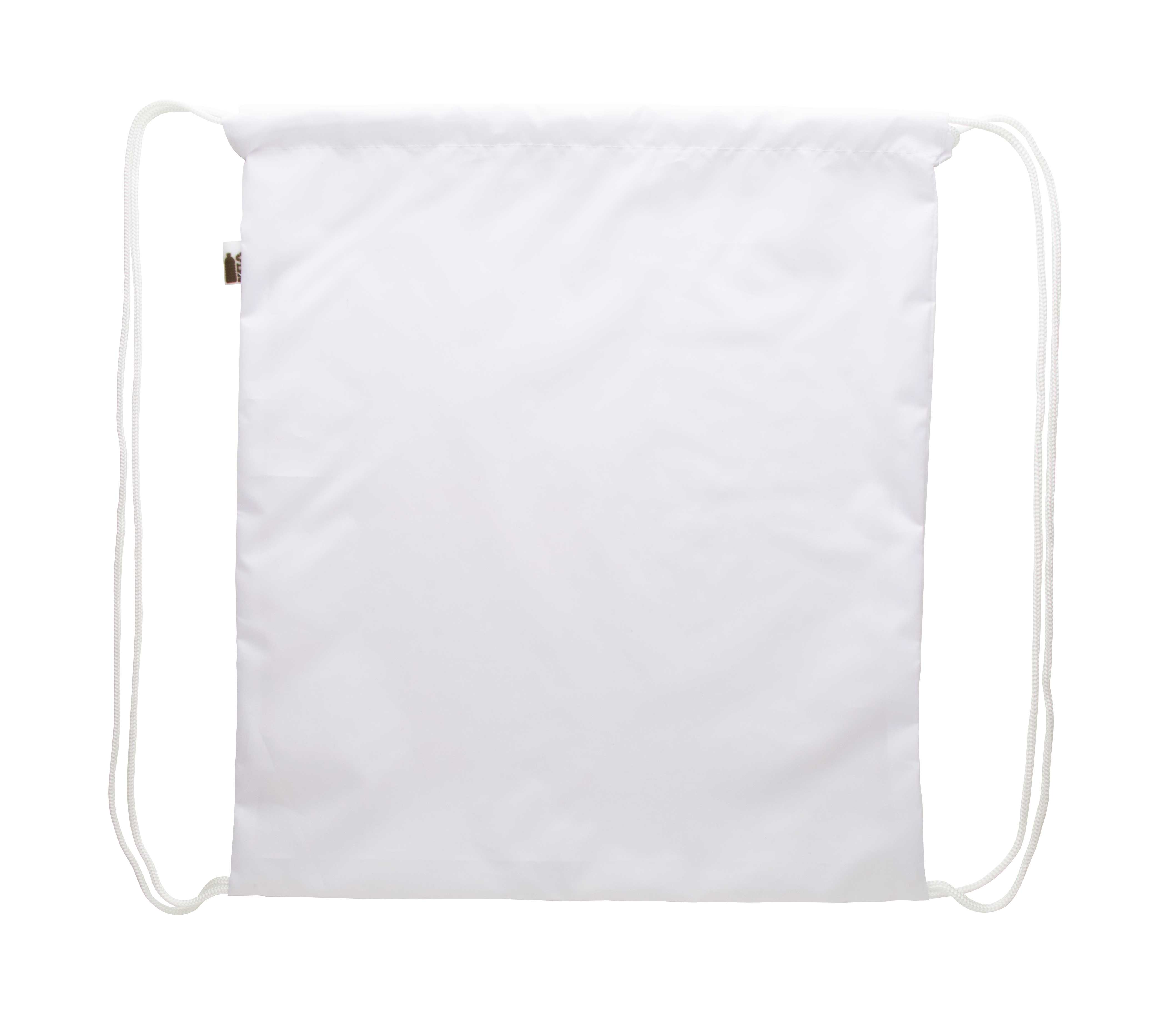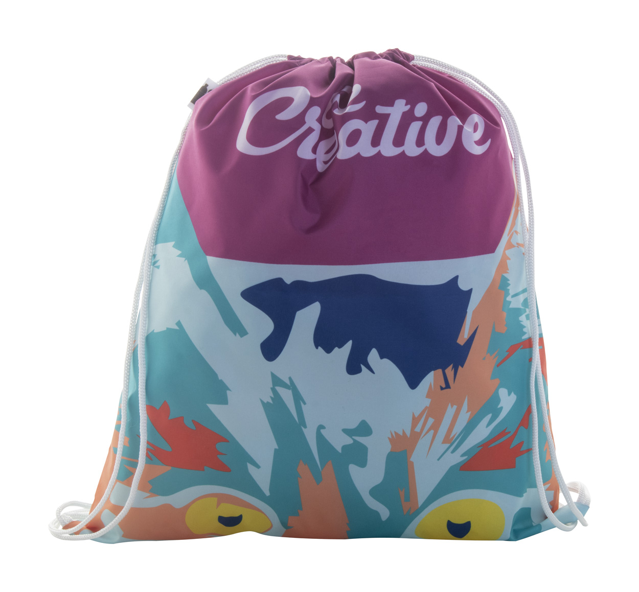 Vak na stažení šňůrkou na zakázku s barevnými šňůrkami, 190T RPET, s etiketou s označením RPET. Cena zahrnuje celoplošný sublimační potisk, nezahrnuje tiskovou přípravu. Min. mn.: 50 ks.