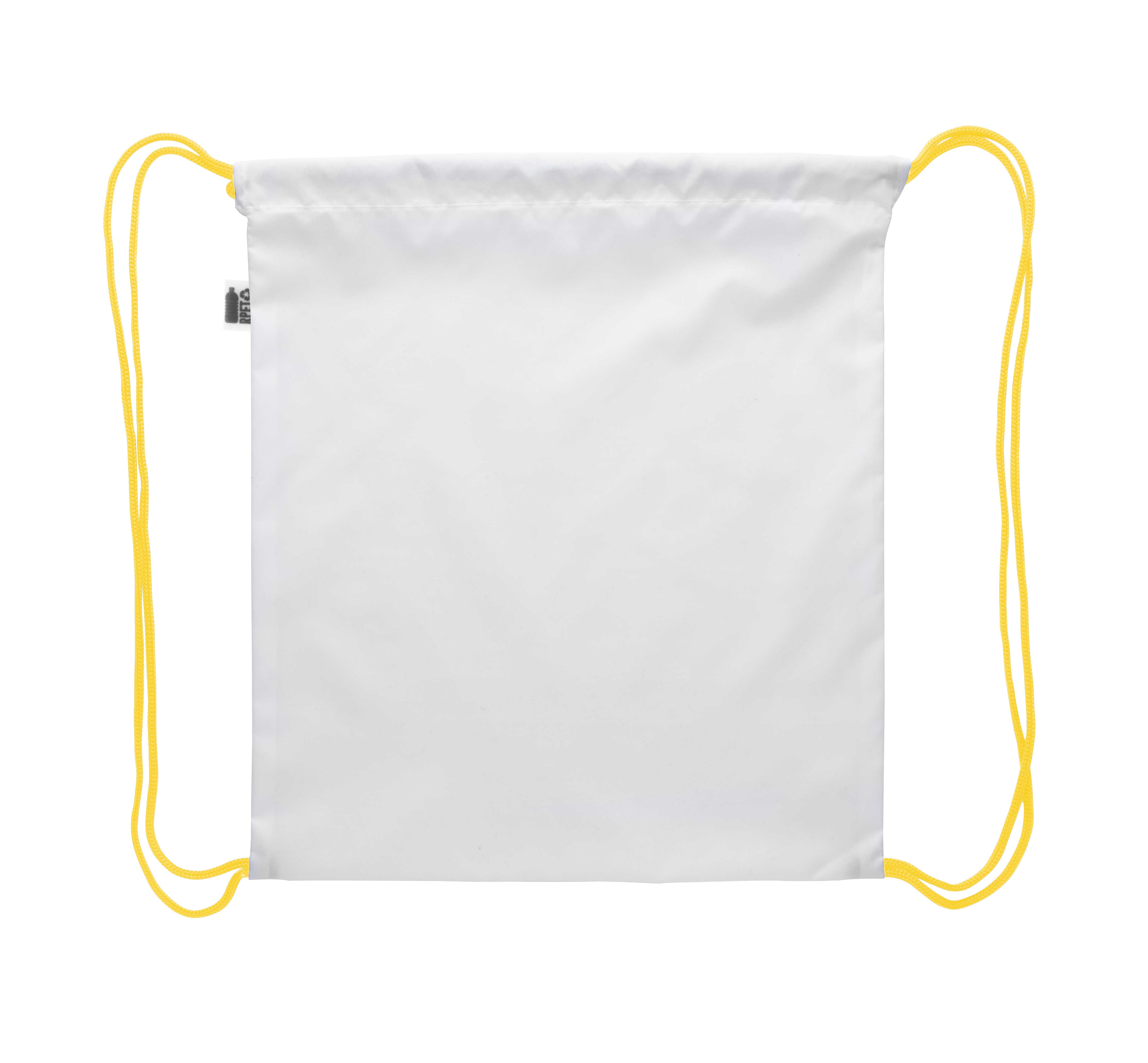Dětský vak na stažení barevnými šňůrkami na zakázku, polyester 190T RPET, výrazný štítek RPET. Cena zahrnuje sublimační tisk po celé ploše, nezahrnuje tiskovou přípravu. Min. mn.: 50 ks.