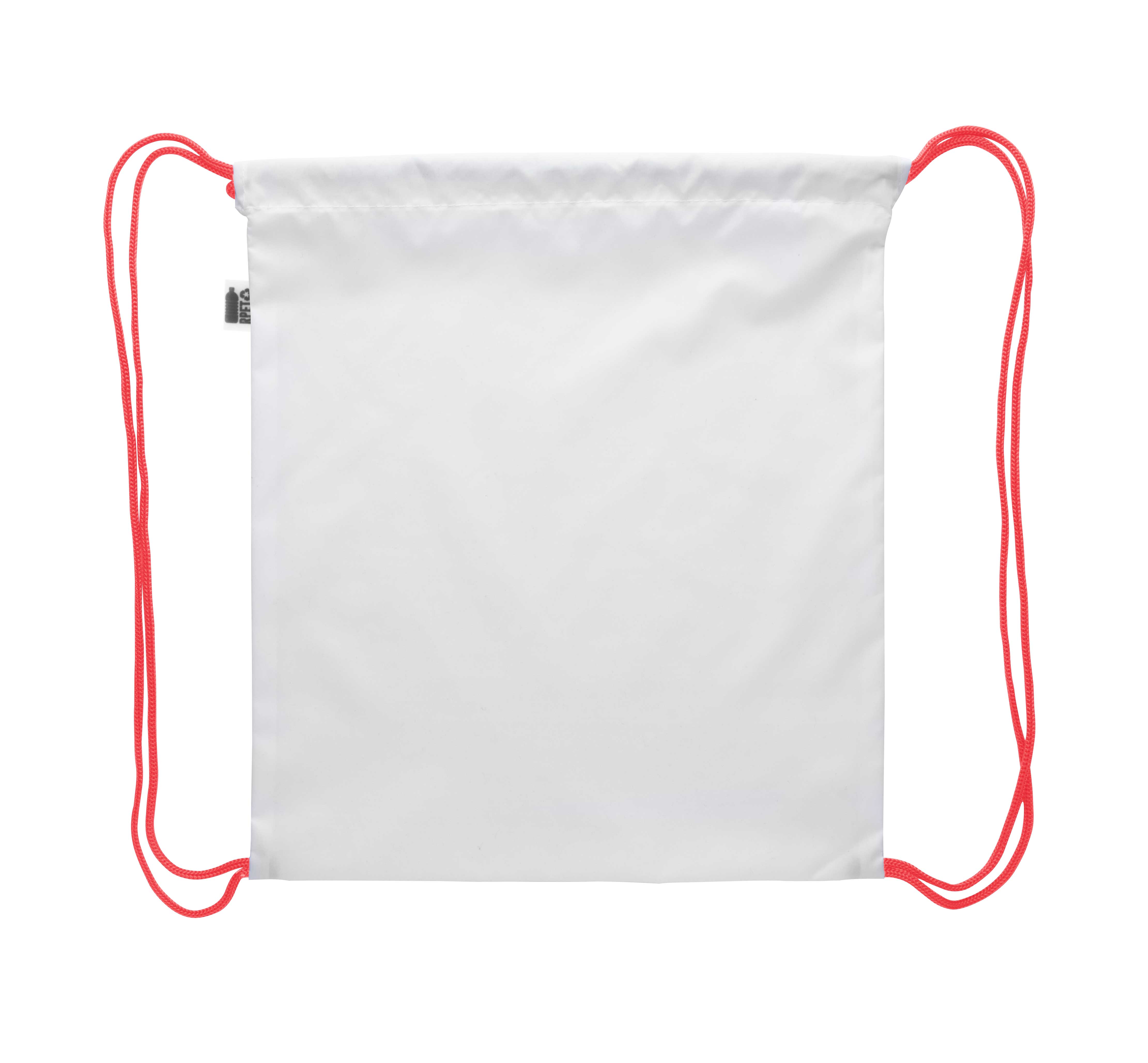Dětský vak na stažení barevnými šňůrkami na zakázku, polyester 190T RPET, výrazný štítek RPET. Cena zahrnuje sublimační tisk po celé ploše, nezahrnuje tiskovou přípravu. Min. mn.: 50 ks.
