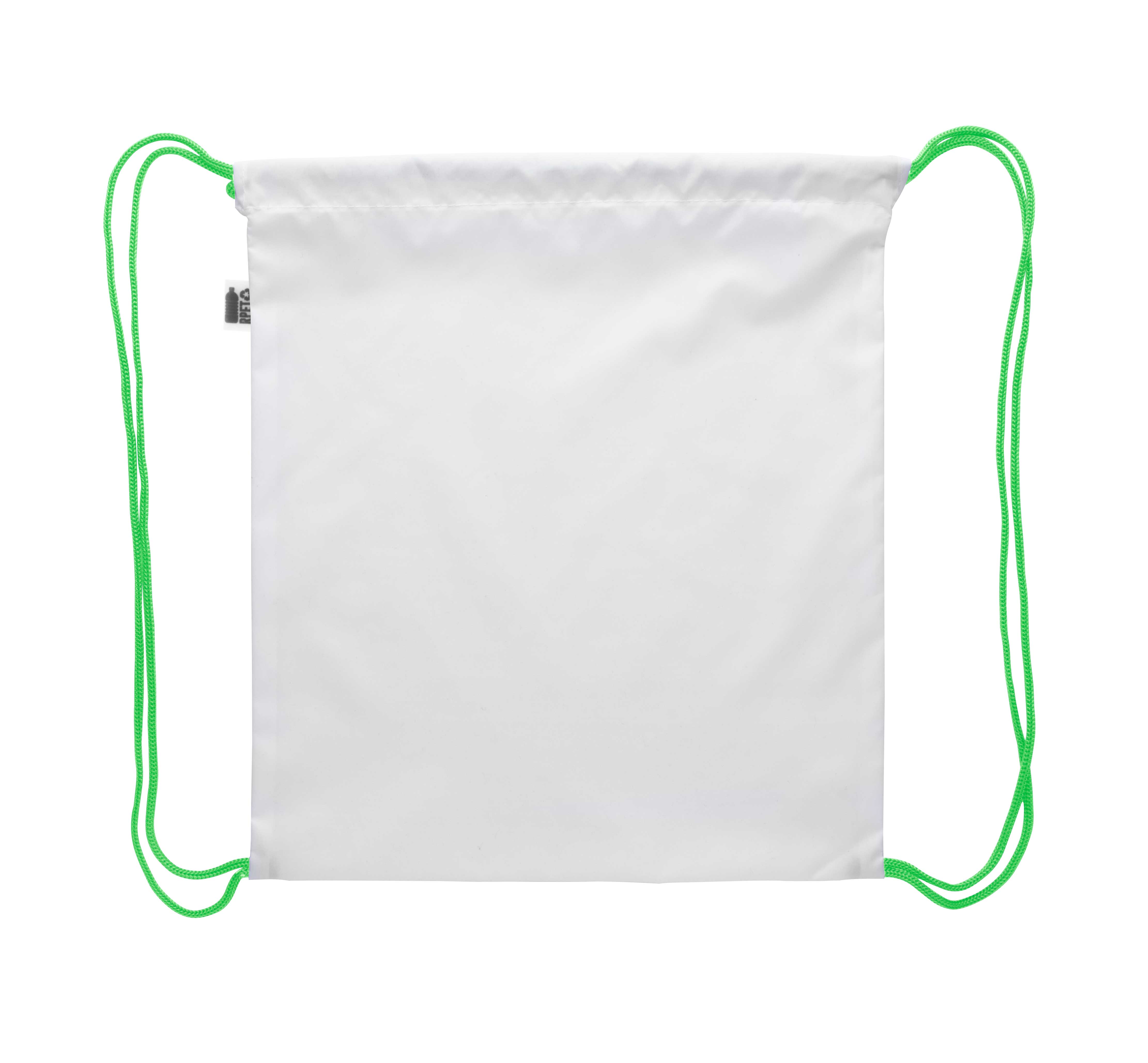 Dětský vak na stažení barevnými šňůrkami na zakázku, polyester 190T RPET, výrazný štítek RPET. Cena zahrnuje sublimační tisk po celé ploše, nezahrnuje tiskovou přípravu. Min. mn.: 50 ks.
