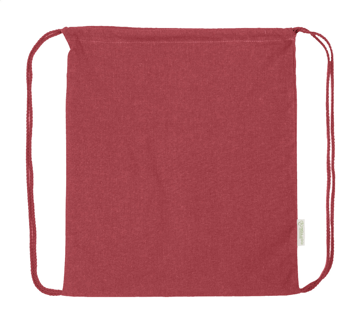 Vak se stahovací šňůrkou ze 70 % recyklované bavlny a 30 % polyesteru RPET, 140 g/m². S výrazným štítkem z recyklované bavlny.