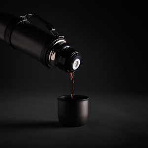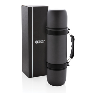 Vakuová termoska s dvouplášťovou stěnou v elegantním provedení s úchytem, popruhem na rameno a dvěma šálky pro dopřání si nápoje vždy a všude. Nepropustná a pouze pro ruční mytí. Objem 680ml.