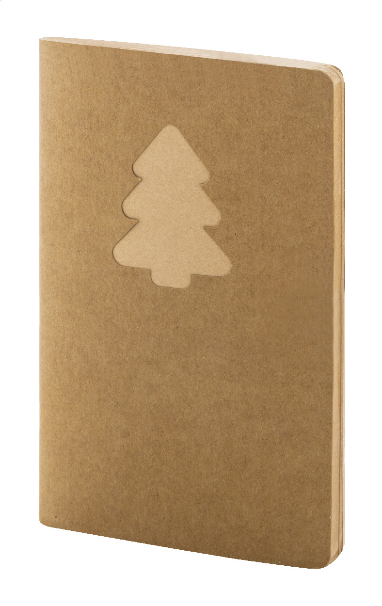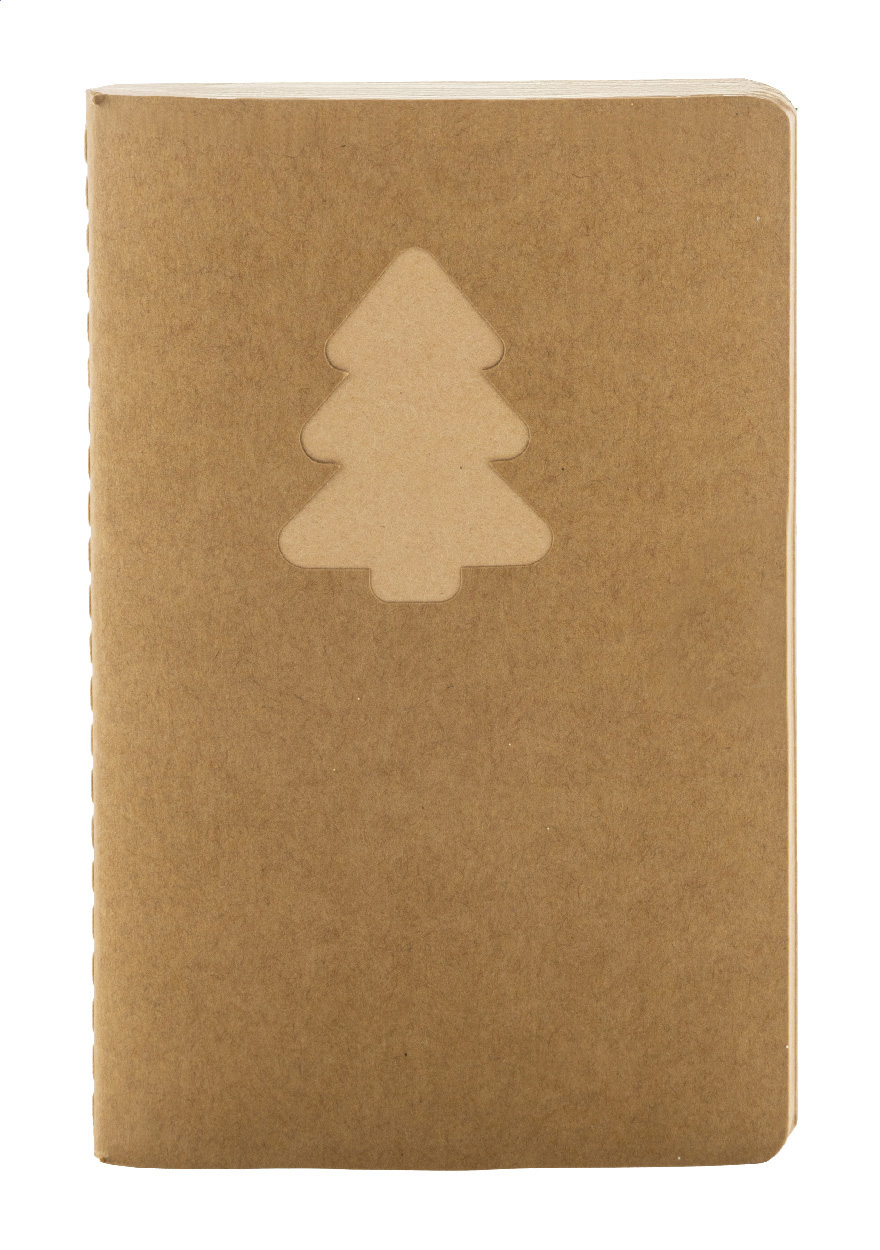 Blok A6 z recyklovaného kraftového papíru s vyřezávaným vánočním stromečkem a 60 prázdnými listy z recyklovaného kraftového papíru.