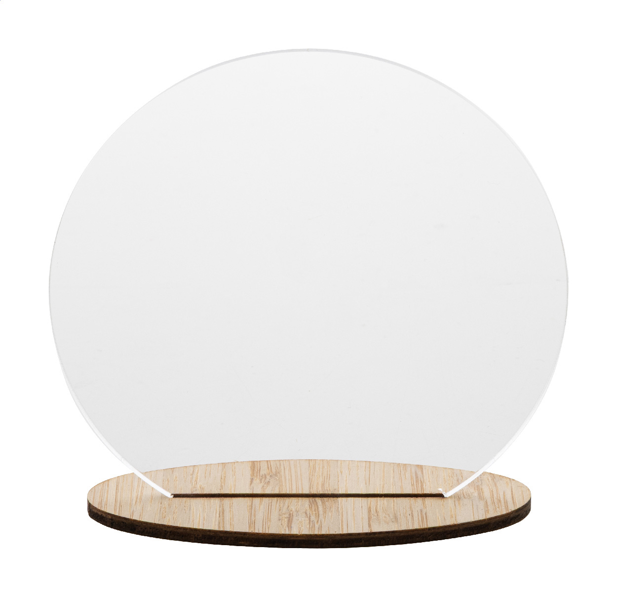 Vánoční dekorace z akrylu ve tvaru sněhové koule na zakázku s plnobarevnou grafikou a bambusovým stojanem. Cena zahrnuje UV LED potisk, cena nezahrnuje tiskovou přípravu. Min. mn.: 50 ks.