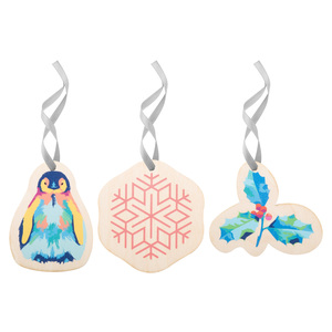 Zakázková ozdoba na vánoční stromeček z březové překližky s vlastním tvarem a plnobarevnou grafikou. Maximální rozměr: 80x80 mm. Cena je včetně UV LED tisku na jedné straně, nazahrnuje tiskovou přípravu. Dodáváno se stuhou zvlášť. Min. mn.: 100 ks.