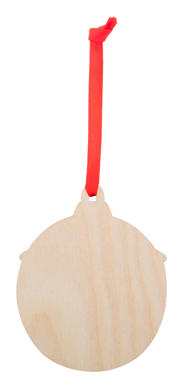 Vánoční ozdoba z březové překližky, s tištěným vánočním designem a červenou stužkou, která je dodávána zvlášť.