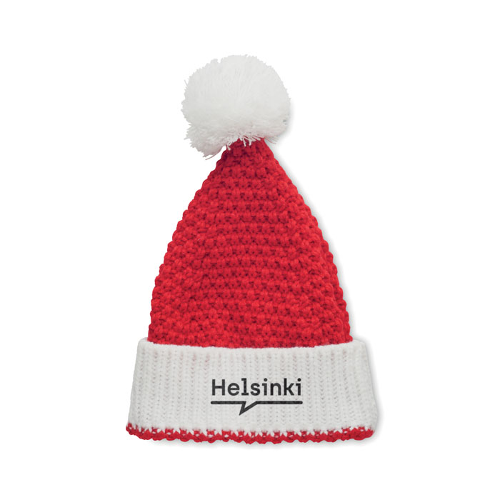 Vánoční pletená čepice měkkého RPET polyesteru, s lemem a bambulí.
