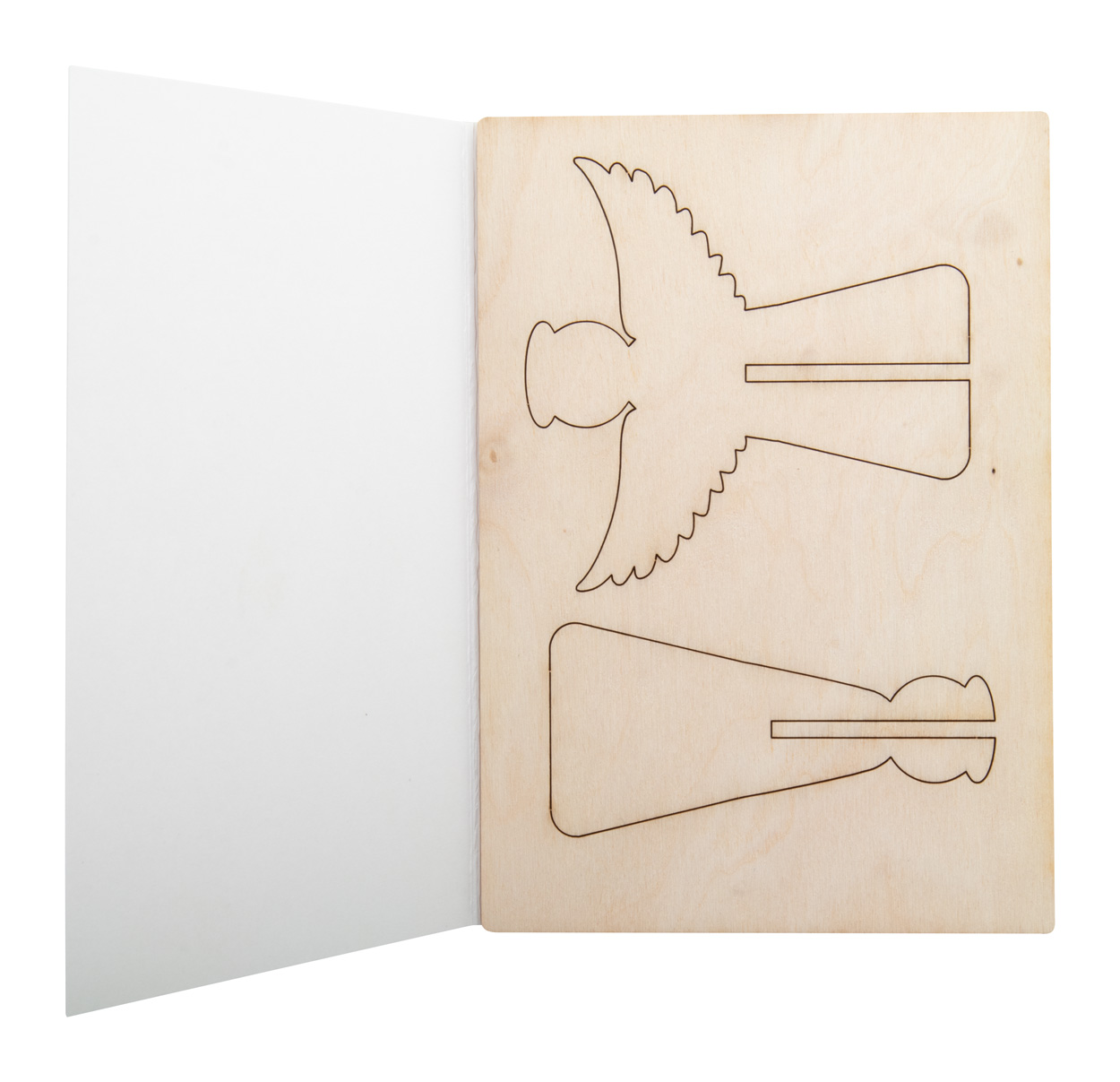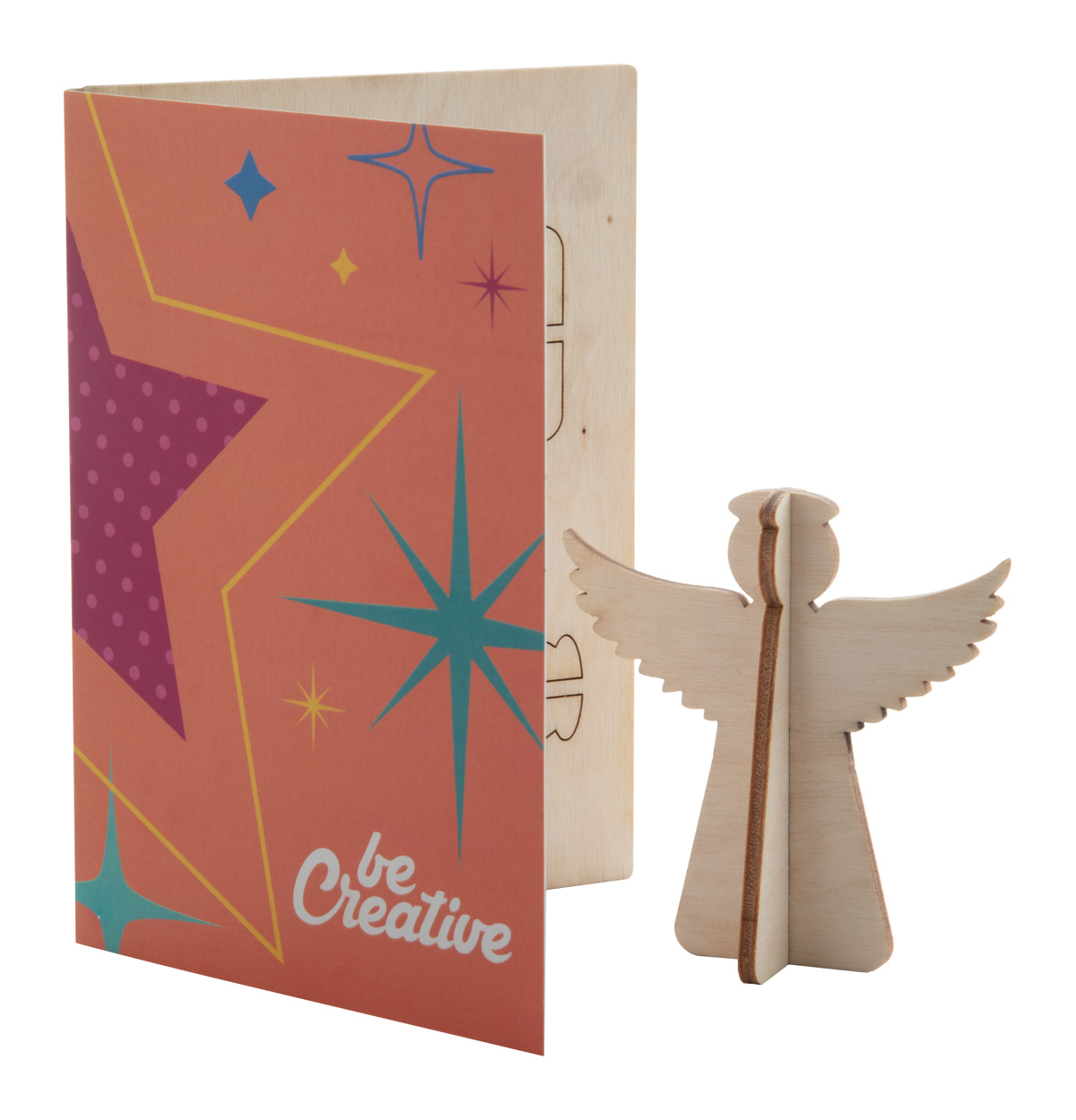 Vánoční přání na zakázku z papíru s grafikou na obou stranách a dřevěným vánočním motivem na sestavení. Vč. C6 poštovní obálky. Min. mn.: 100 ks.