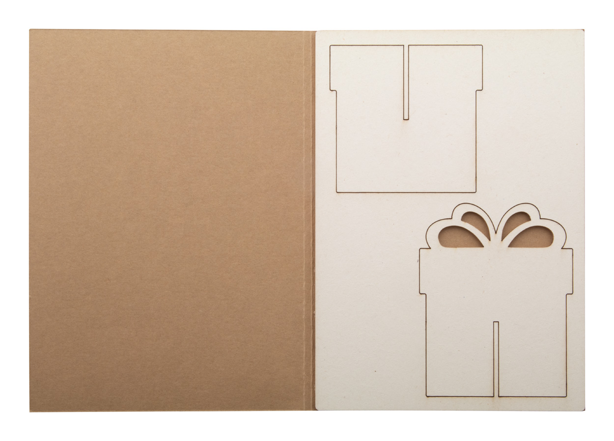 Vánoční přání z kraftového papíru na zakázku s vlastní grafikou na obou stranách, včetně ozdoby na sestavení z dřevité lepenky. Včetně poštovní obálky C6. Min. mn.: 100 ks.