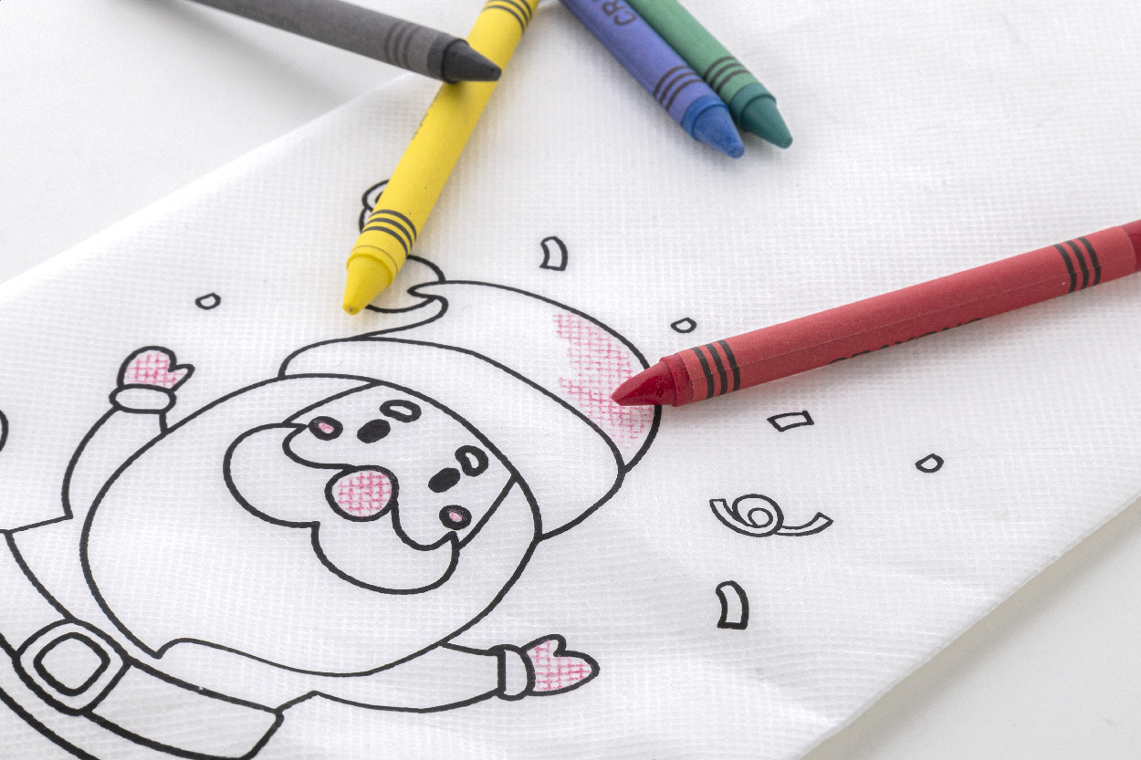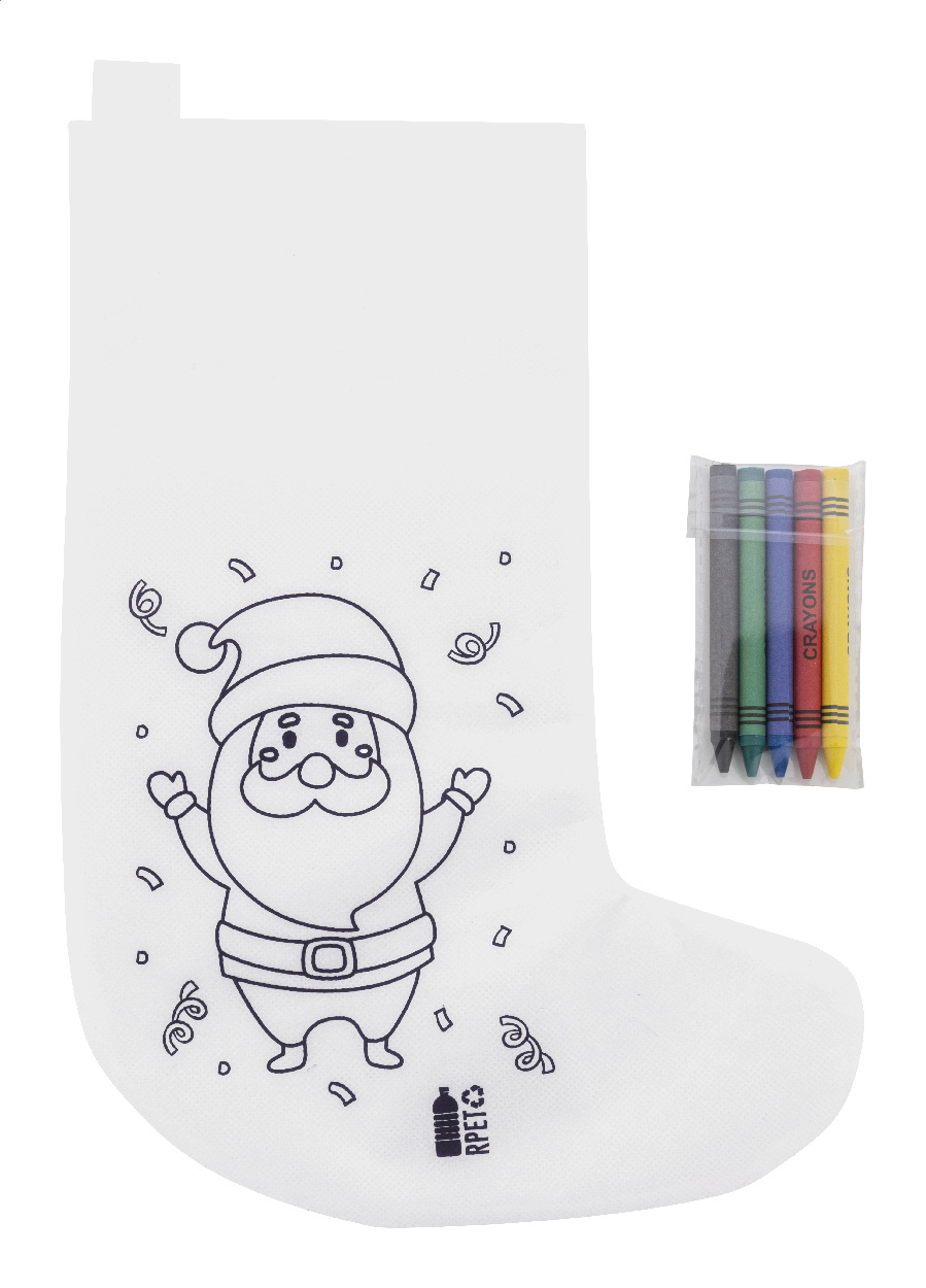 Vánoční punčocha na vybarvování z netkané RPET tkaniny s 5 voskovkami.