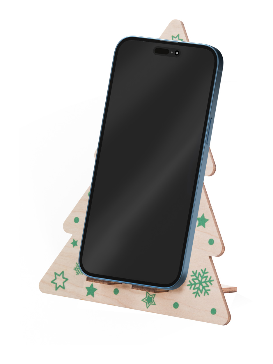 Stojánek na mobil ve tvaru vánočního stromku z březové překližky. Dodáváno rozložené.