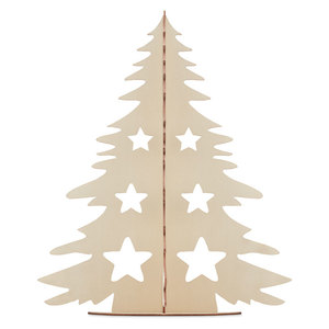 Dřevěná silueta vánočního stromku k vybarvení se 6 vodovými barvami a štětcem.